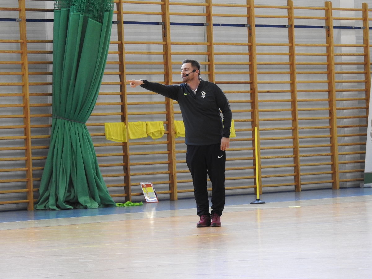 W sesji praktycznej rozpoczął Jakub Grzęda aktywizacją przedtreningową na konkretnych ćwiczeniach, później Michał Libich przeprowadził przykładowe ćwiczenia w kategorii U-11 dotyczące zmiany pozycji. Po czym Michał Dorna – trener reprezentacji Polski U-15 przeprowadził gry doskonalące fazy przejściowe Atak/Obrona Obrona/Atak w treningu dzieci.