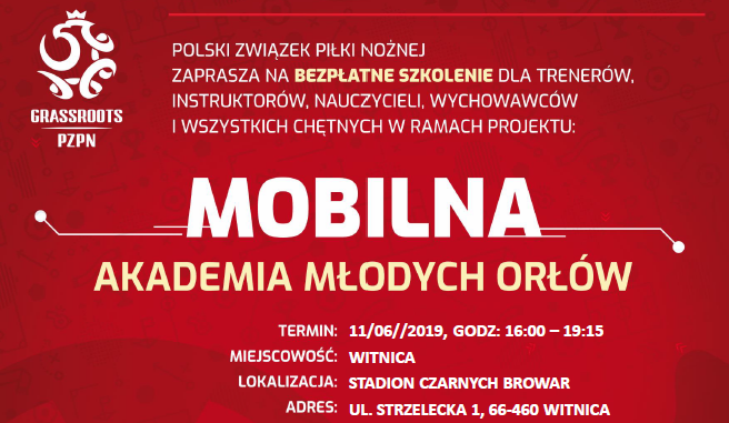 Polski Związek Piłki Nożnej zaprasza na BEZPŁATNE SZKOLENIE dla trenerów, instruktorów, nauczycieli i wychowawców w ramach projektu Mobilna Akademia Młodych Orłów. Najbliższe szkolenie odbędzie się 11 Czerwca 2019 roku w Witnicy. Poniżej przedstawiamy szczegółowe informację oraz listę powołanych zawodniczek.