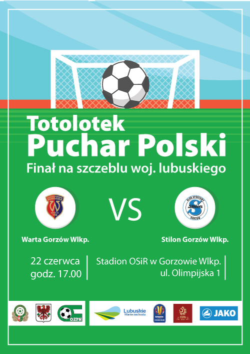 Poznaliśmy finalistów Totolotek Pucharu Polski na szczeblu woj. lubuskiego. W wielkim finale, który zostanie rozegrany 22 czerwca o godz. 17:00w Gorzowie Wlkp. zobaczymy dwie miejscowe drużyny: Wartę Gorzów i Stilon Gorzów. Emocji na pewno nie zabraknie. Dodatkowo chcielibyśmy Państwa serdecznie zaprosić na pozostałe wydarzenia, które towarzyszą finałowi: