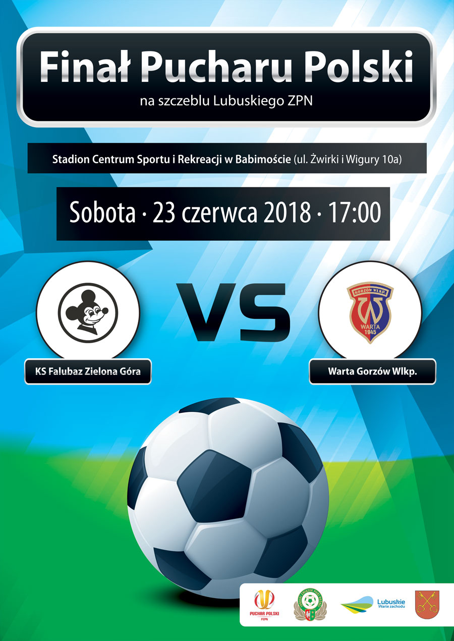 Trwa odliczanie do Finału Pucharu Polski na szczeblu woj. lubuskiego. W sobotę, 23 czerwca w Babimoście w najważniejszym meczu sezonu 2017/2018 zmierzą się KS Falubaz Zielona Góra i Warta Gorzów Wlkp. Początek spotkania o godz. 17:00. Oprócz finału Pucharu Polski w Babimoście odbędzie się wiele wydarzeń piłkarskich: m.in. Lubuska Kursokonferencja Trenerów (22-23.06) zorganizowana przez Wydział Szkolenia Lubuskiego ZPN. Serdecznie zapraszamy do Babimostu!